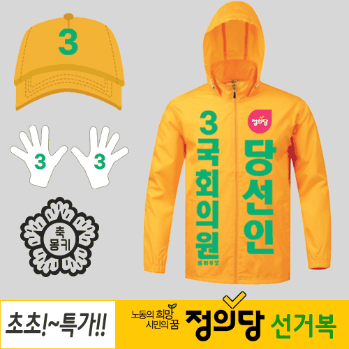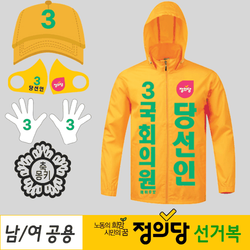 - 정의당 선거복 3종 세트(바람막이·모자·장갑) 로고번호인쇄