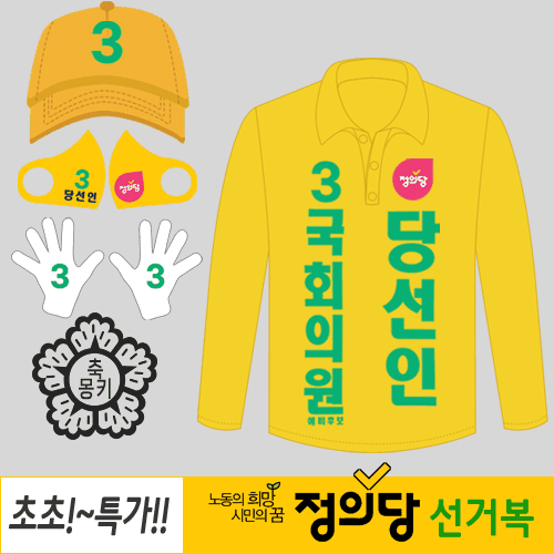 - 정의당 유세 선거복 3종 세트 (카라티·모자·장갑) 문구인쇄